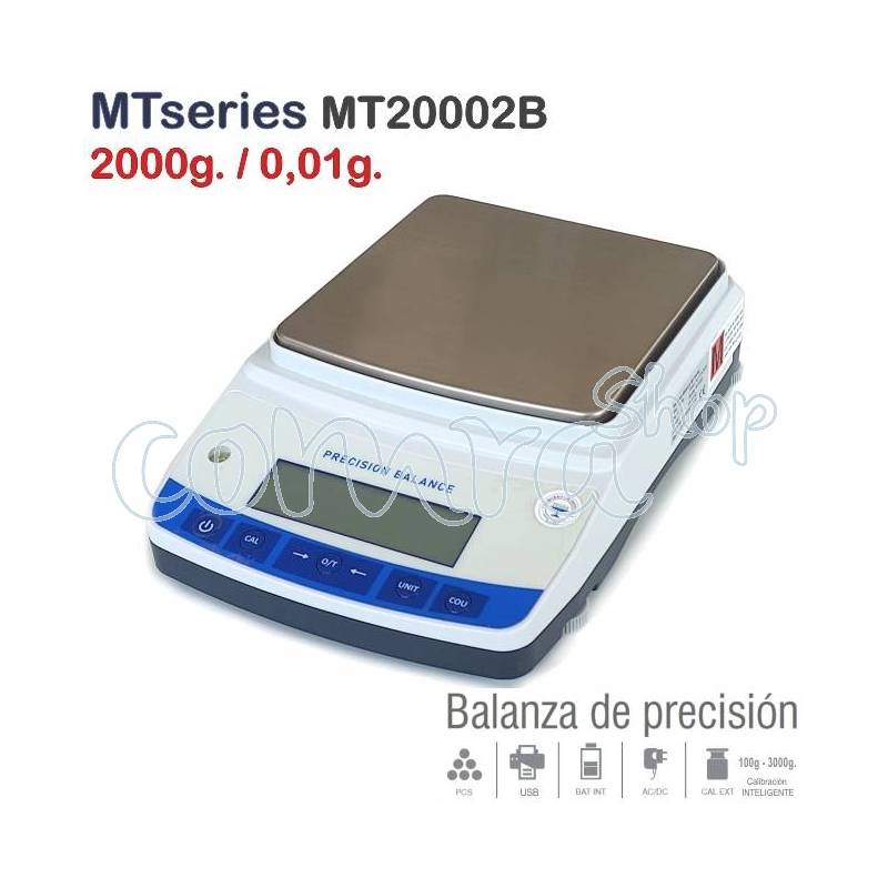 Balanza MTseries Mod. MT20002B. Capacidad 2000 gr. / 0,01 gr. Serie de Precisión Económica, de dimensiones reducidas, ideal para todo uso.