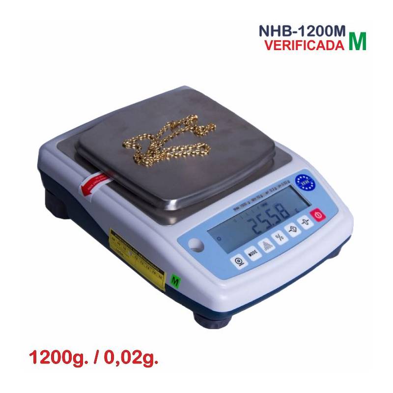 Balanza Verificada NHB-1200M, 1200 gr./ 0,02 gr. Con certificación "M" clase II, aptas para la compra-venta de oro y metales preciosos. Esta Balanza es Apta para Transacciones Comerciales.