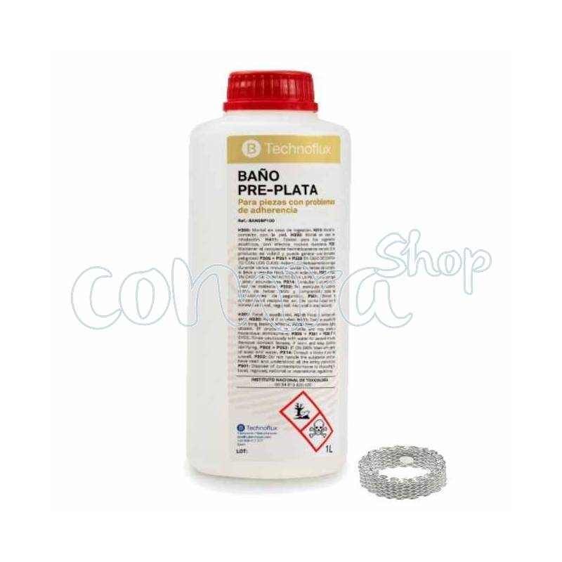 Baño de Pre- Plata. Preparación de piezas con dificultad de adherencia para el baño de plata brillante. 1 Litro, listo uso.