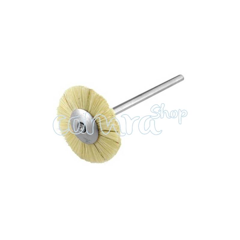 Cepillo montado Circular de 23mm. Fabricado con cerdas naturales, este cepillo se usa generalmente para el desbaste o pulido de partes difíciles de las piezas. Montado sobre un eje de 2.30mm. Fabricación alemana.
