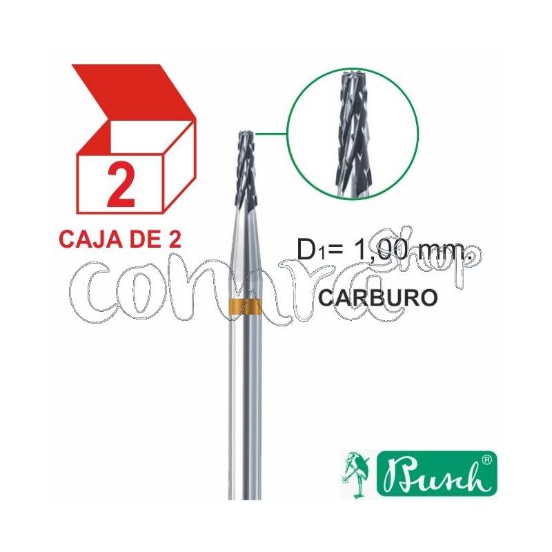 Fresa Fig. 38AU/010 Tronco Cónica con estrias 1,00 mm. en Carburo, Germany made. Caja de 2.