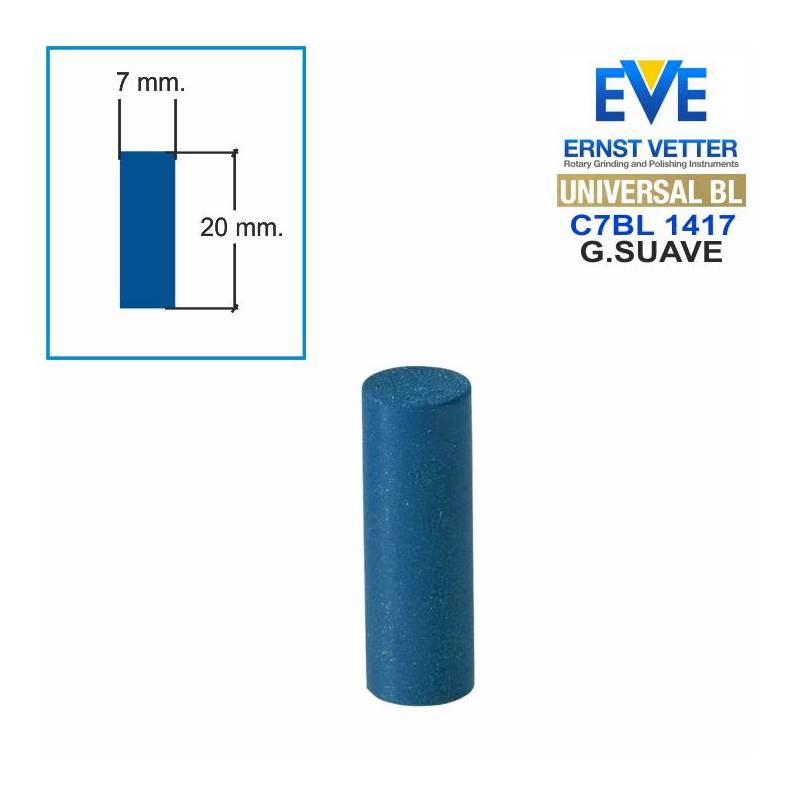 Goma Abrasiva EVE UNIVERSAL BL C22bl-1417. Azul oscuro, forma Cilíndrica 7x20 mm. Grano Medio/Suave; Abrillantado mate sedoso en metales preciosos.
