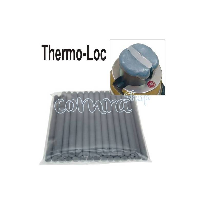 Thermo Loc de GRS es un material polímero especial reutilizable que es rígido a temperatura ambiente, sin embargo, llega a ser muy flexible cuando se calienta. Desarrollado para sujetar con firmeza las piezas de forma irregular o frágil. ThermoLoc puede ser utilizado en joyas, objetos valiosos, armas de fuego, cuchillos, madera, y otros muchos artículos. Se suministran en largos barras de unos 15cm. Thermo-Loc es de un color gris medio diseñado para reducir reducir la fatiga visual incluso bajo iluminación intensa, no es tóxico y es biodegradable.