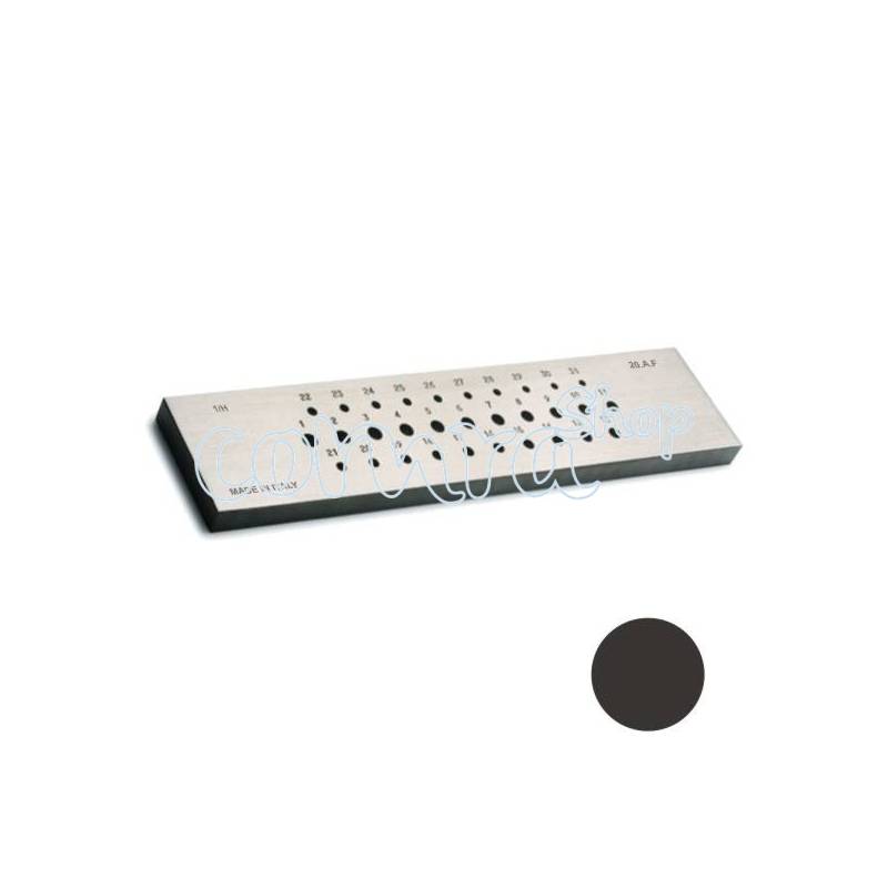 ilera para trefilar o estirar hilo Redondo de diversos metales; Oro, Plata, Latón... etc. Dispone de 31 agujeros de diferente medida. Fabricada en Acero tratado de Alta Calidad, Made in Italy.