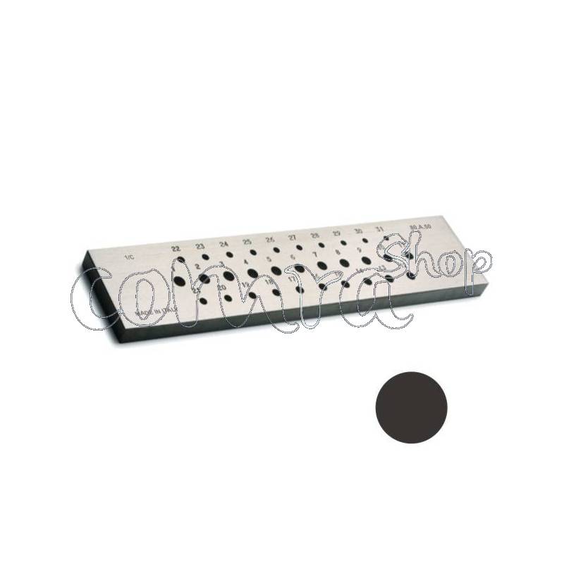 Hilera para trefilar o estirar hilo Redondo de diversos metales; Oro, Plata, Latón... etc. Dispone de 31 agujeros de diferente medida. Fabricada en Acero tratado de Alta Calidad, Made in Italy.