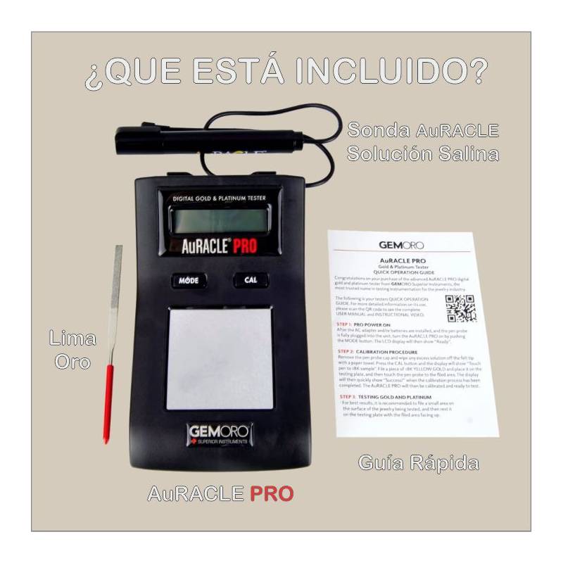 Comprobador de oro GemOro AuRACLE PRO, Gold Tester. Portátil, de máxima precisión, Display LCD, para verificar oro de 8K a 24K y platino. Fácil de usar, en cuestión de segundos proporciona resultados precisos de los metales, ideal para joyeros y compra-venta de metales preciosos.