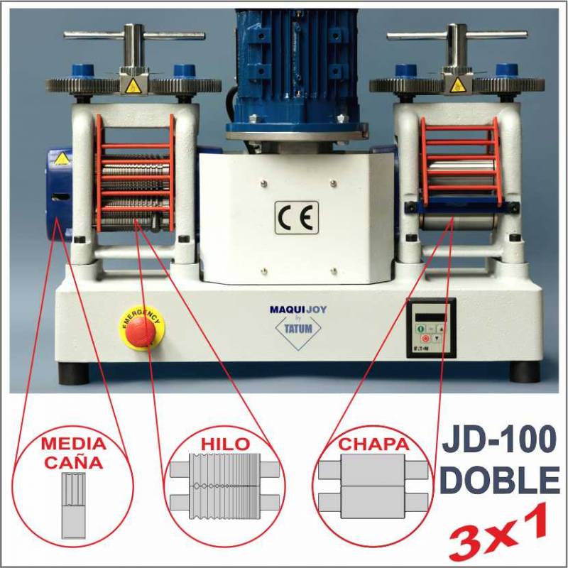 Laminador Eléctrico de Sobremesa TATUM Mod. JD-100 Doble "3x1" (Chapa-hilo-1/2Caña). 2 Cabezales independientes para Chapa y para Hilo de 100 mm. y 2 Ruletas para Medias cañas, intercambiables. Fabricación española CE.