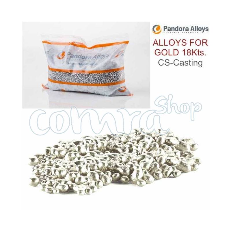 Liga para Oro Blanco de 18 Kilates. Especial Microfusión, Fórmula C/S-Classic casting. Envase de 50 grs. Pandora Alloys