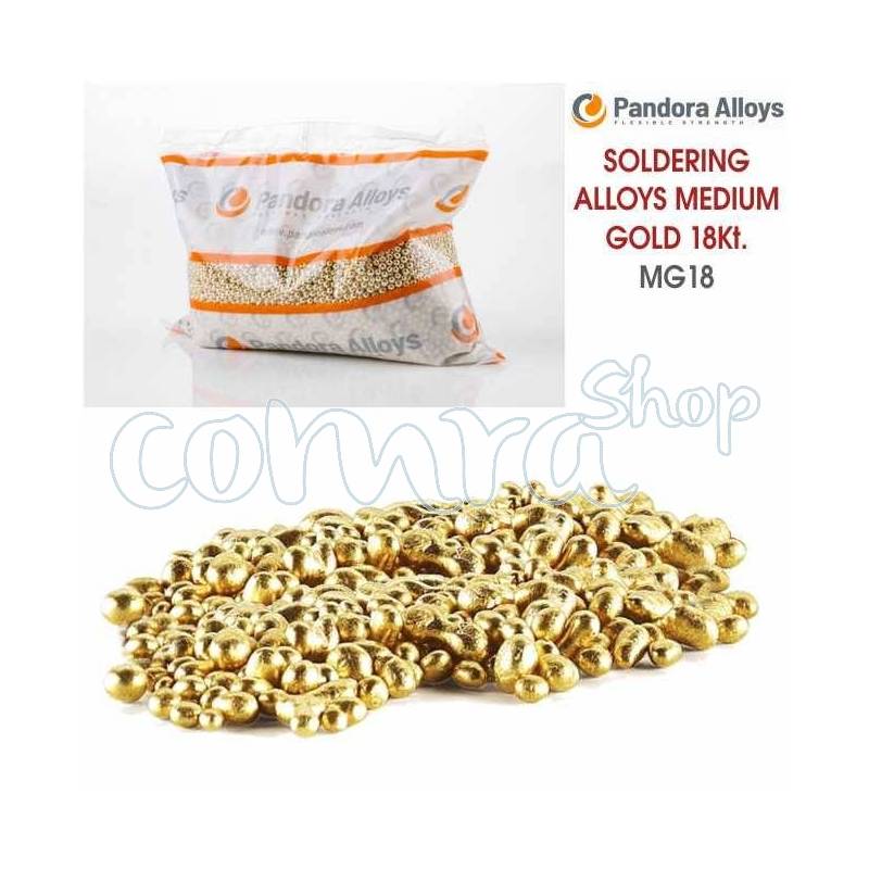 Liga para hacer soldadura de Oro de 18Kts. Pandora Alloys MG-18 es una pre-aleación para la producción de aleaciones de soldadura de Oro Amarillo dureza media.