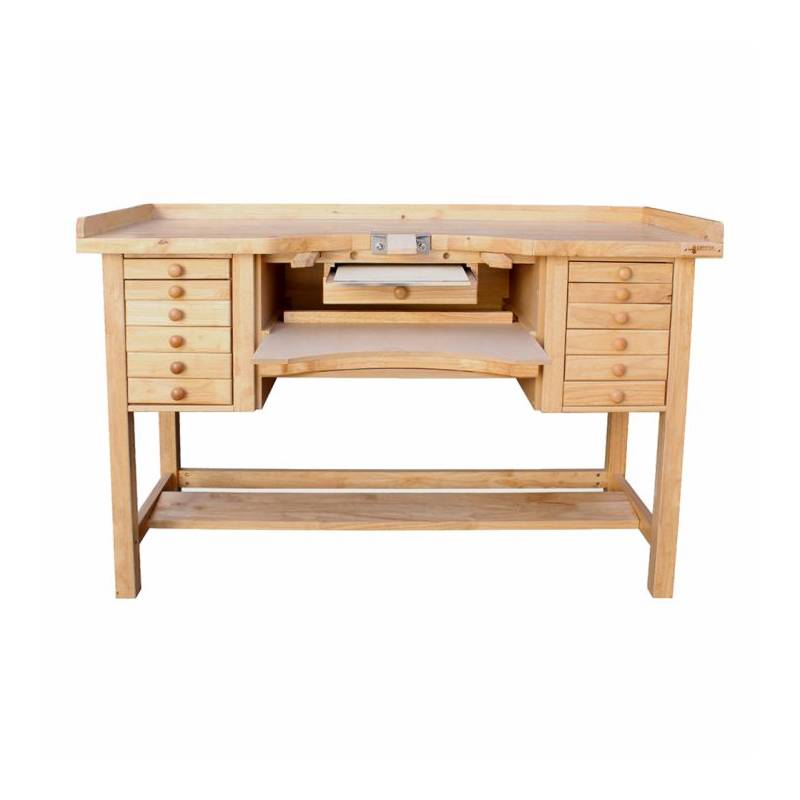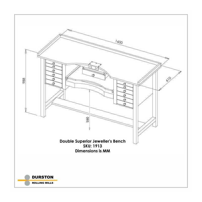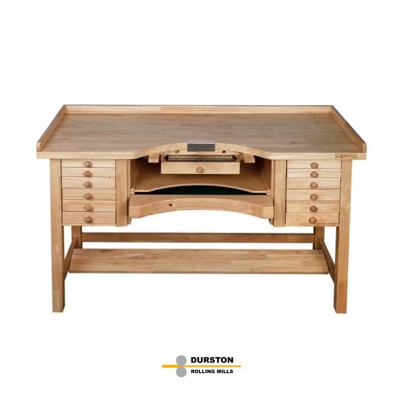 Mesa o Banco de Trabajo para Joyero Doble Superior de 1 Puesto, con cajones laterales a ambos lados. Es el banco de joyero más prestigioso "Durston Goldsmith" y está repleto de características. Fabricado en madera maciza de alta calidad. Durston Jewellers Goldsmiths Hardwood Workbench, Superior Double. England made.