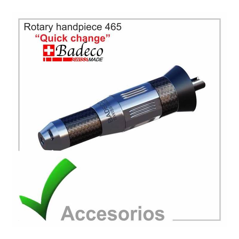 Rotary handpiece 465 – Quick change. Pieza de mano rotatoria Badeco 465 – Cambio rápido. Cabezal rotatorio indicado para montar en el micromotor Badeco RS2000, Badeco Swiss Made. ol MX.