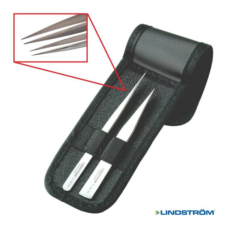 Set de 2 Pinzas Lindström puntas finas y lisas, en acero Inox. Ofrecen gran equilibrio, alineación de puntas y simetría perfectas.