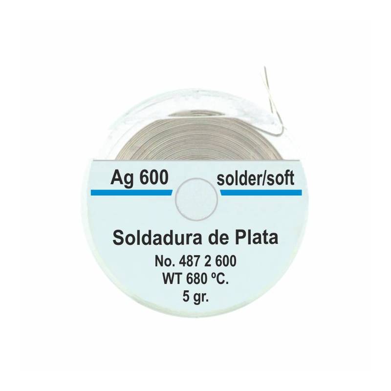 Soldadura de Plata Floja, 600 milésimas. En Hilo Plano de 0,95x0,25mm. Punto de fusión 680ºC. Bobina de 5 grs.