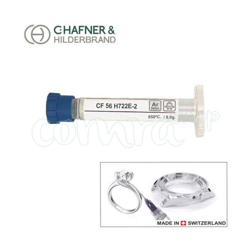 Soldadura en Pasta para Soplete. Plata media 560 milésimas P. Fusión 650ºC. Jeringa envase de 8 gr. Fabricación C.Hafner & Hilderbrand Suiza