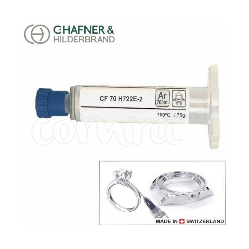 Soldadura en Pasta para Soplete. Plata fuerte700 milésimas P. Fusión 700ºC. Jeringa 30cc. "Envase económico" de 75 gr. Fabricación C.Hafner & Hilderbrand Suiza
