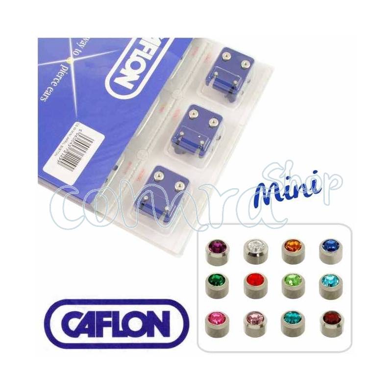 Pendiente o Piercing Caflon Original de Botón o Chatón, plateado con Piedra color surtido, tamaño "Mini". Chapados en plata, envase de 12 Pares, Caflon Inglaterra.