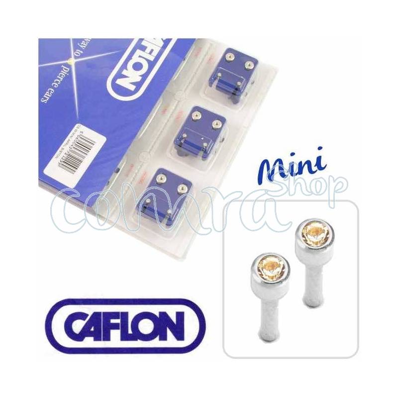 Pendiente o Piercing Caflon Original de Botón o Chatón, plateado con Piedra color blanco, tamaño "Mini". Chapados en plata, envase de 12 Pares, Caflon Inglaterra.